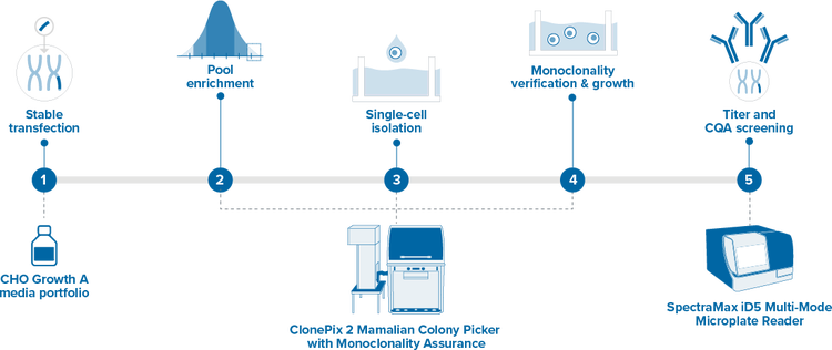 Monoclonal colonies are evaluated for productivity and critical quality attributes (CQAs) — such as titer, purity, and post-translational modifications.
