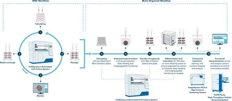 The CellXpress.ai Automated Cell Culture System automates organoid development, minimizing manual intervention and operator bias, which is crucial for achieving consistent cell growth and differentiation of iPSC-derived neural models. The outcome is a foundation of highly reproducible 3D models ready for advanced screening.