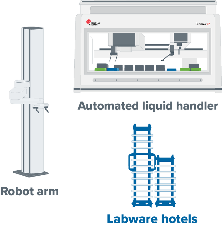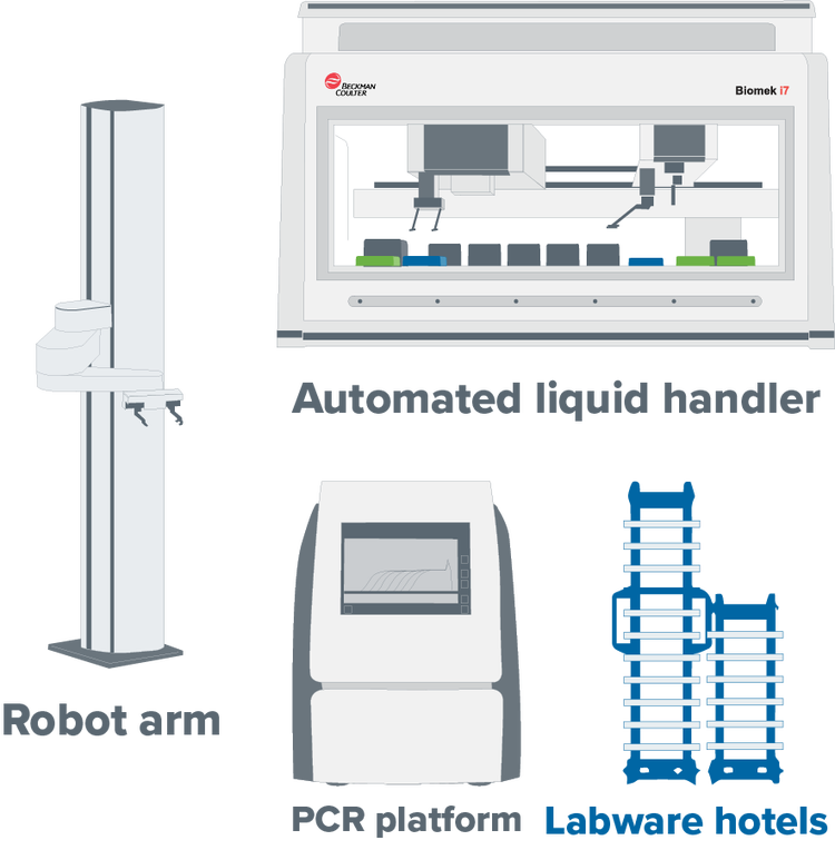 This automated platform is designed for researchers aiming to streamline their plasmid preparation process. Perfect for achieving low to medium throughput with validated protocols, our entry-level automation setup has the potential to expand. Featuring: