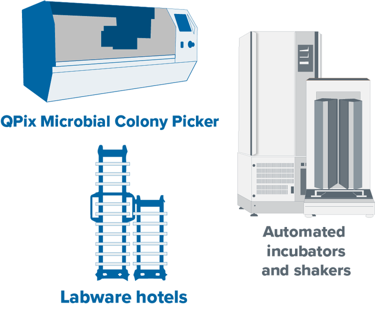 - Picking and Screening - These colonies are then automatically picked and screened by our QPix® microbial colony picker.