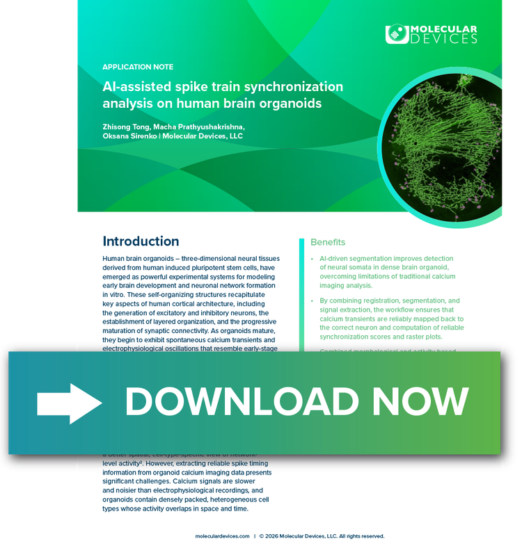 In this application note, high-content imaging combined with IN Carta® Image Analysis Software enables automated, AI-driven analysis of neuronal activity within complex brain organoid models.
