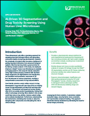 In this application note, high-content imaging combined with IN Carta® Image Analysis Software enables automated, AI-driven analysis of 3D human liver microtissues to improve early hepatotoxicity assessment.